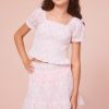 Cozy and cute in the Barlene Cardigan. This knit stuns with our argyle pointelle stitching, scalloped hem and neckline, and charming buttons down center front.