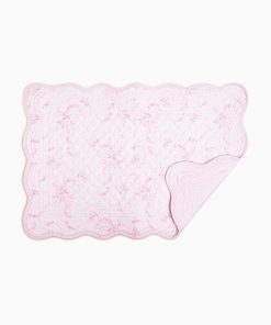 Add a pretty touch to your tablescape with these must-have place mats. Dreamt up with vintage-inspired and nostalgic details, these reversible, linen place mats feature an heirloom floral print on one side designed to match our printed napkins, while the other side is a hand-dyed pink designed to match the table runner and all color matched back to the full collection of table linens. Arriving in a set of four, each quilted mat features scallop edges with a binding for a vintage-inspired finish.