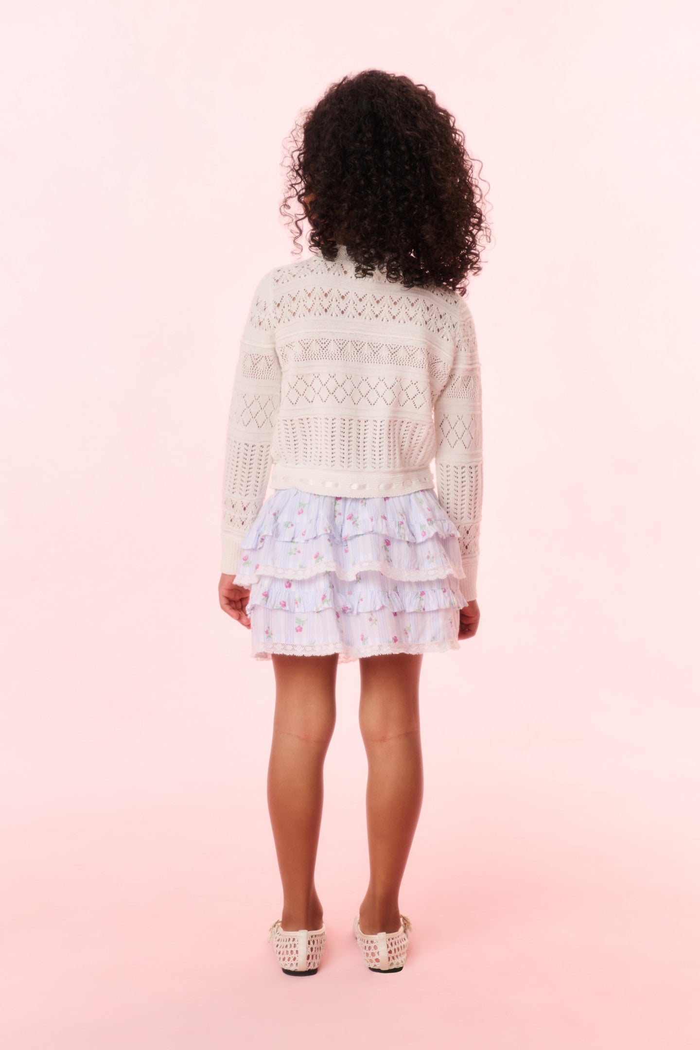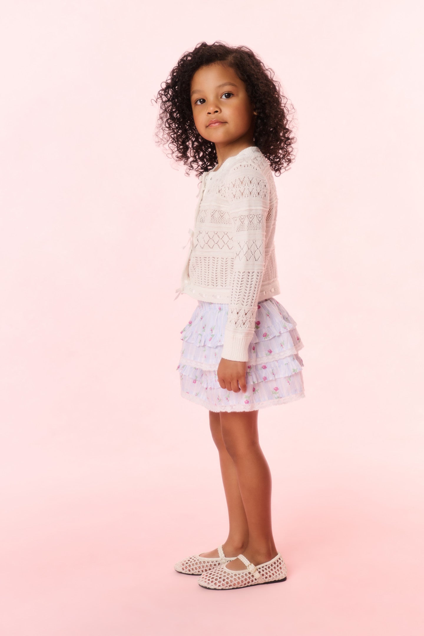 Meet our beloved Billie Skirt in 100% cotton. Below a wide smocked waistband, the skirt falls to two shirred tiers with ruffle details.