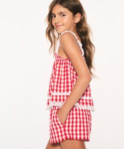 The Georgie Set arrives as part of our America’s Sweetheart Cotton Collection. These pretty bottoms feature a spirited gingham print and scallop details at the leg hole. Pair with the Fiorella Top for the full set.