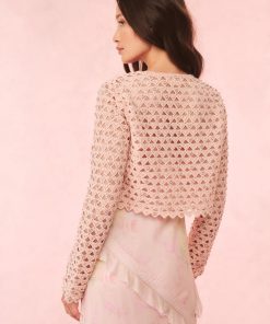 Put on the pretty with the Alaya Jacket. This stunning layer arrives with a lightweight, cotton fabric featuring heart-shaped lace and is embellished with rhinestones all over to give it our signature shimmer. With a cropped, short fit, the expertly-tailored jacket closes at center front with a hook-and-eye closure, has slim-fitting sleeves, is lined at the body and sheer at the sleeves. Wear over your favorite mini or vintage jeans.