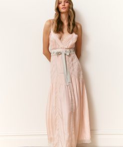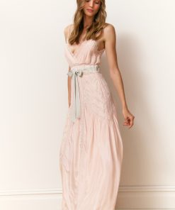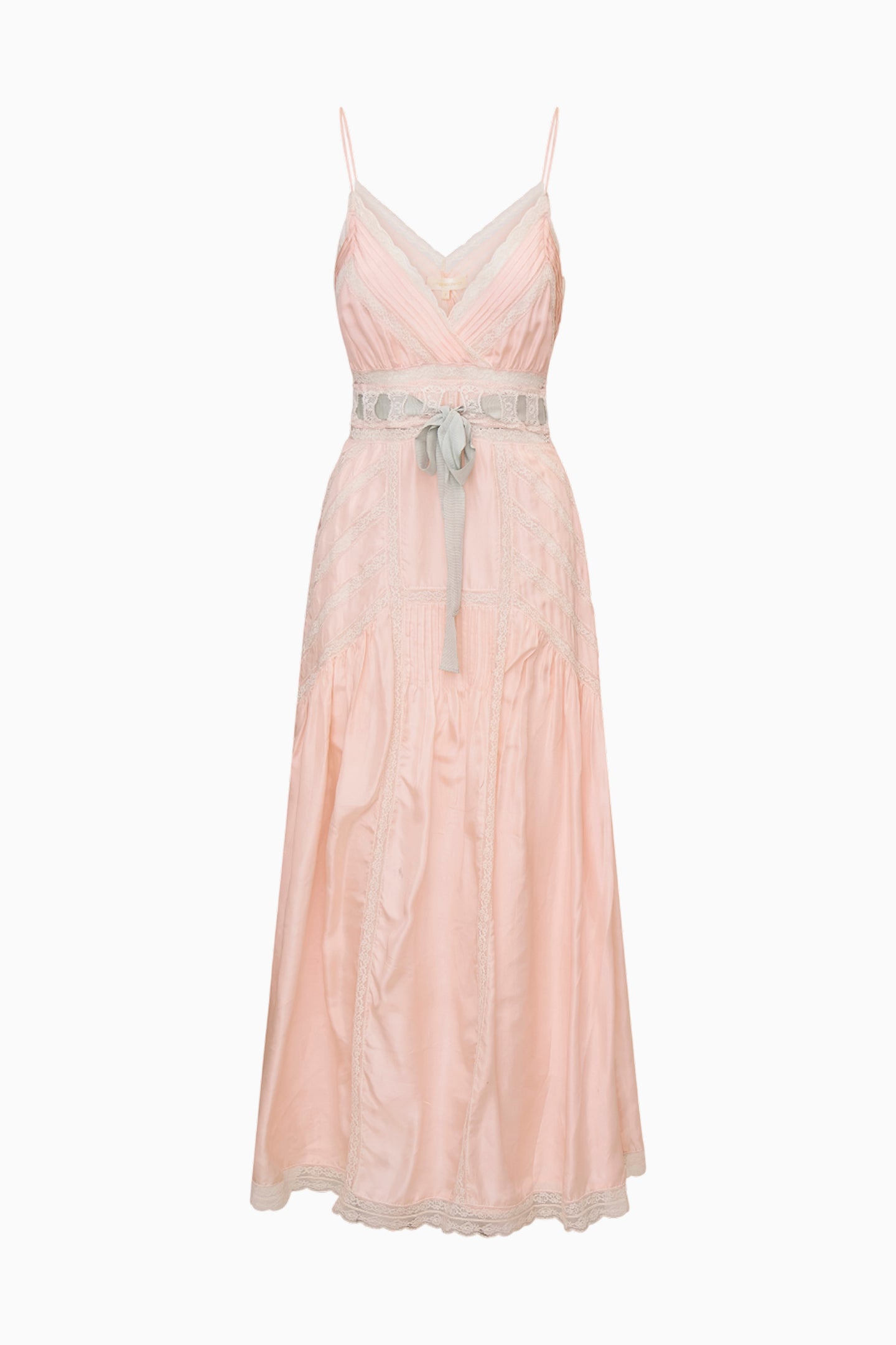 Introducing the Arlissa Dress. Designed from a luxe silk habotai fabric, the lightweight, Bohemian-inspired maxi features a straight silhouette that’s fitted throughout the hip which then releases into a modest A-line skirt. A grosgrain ribbon is threaded around the waist, the front features an overlap detail, and the piece is lined with a polly georgette fabric.