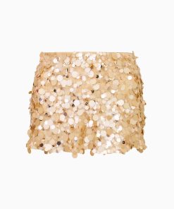 The Aurorlia Skirt is the must-have party piece of the summer. This piece stuns with shimmering large payettes done in a beautiful gold. With a body-hugging silhouette, the flirty skirt is finished with a zipper. Pair with the Vivaldina Top for a full set.