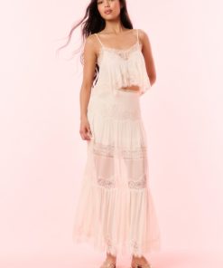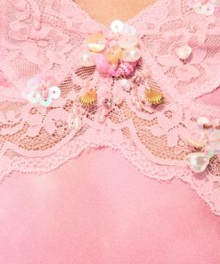 Introducing the Bier Dress. This gorgeous slip dress stuns with a solid charmeuse silk blend fabric with a hand-dyed-like print all over. The midi dress features vintage-inspired laces at the neckline and hem adorned with shell-and-pearl embellishments.