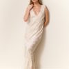 Feeling flirty in the Bristelle Dress. This cami slip dress debuts in a viscose chiffon fabric featuring spirited bouquet prints that have been inverted to an All-American red-and-white colorway. The midi has spaghetti straps and a twist draping detail at the bust that falls to a layer of chantilly lace at the bodice over the draped chiffon. With a bias cut, this dress is slinky and easy-to-wear. The dress is finished with chantilly lace at the hem.