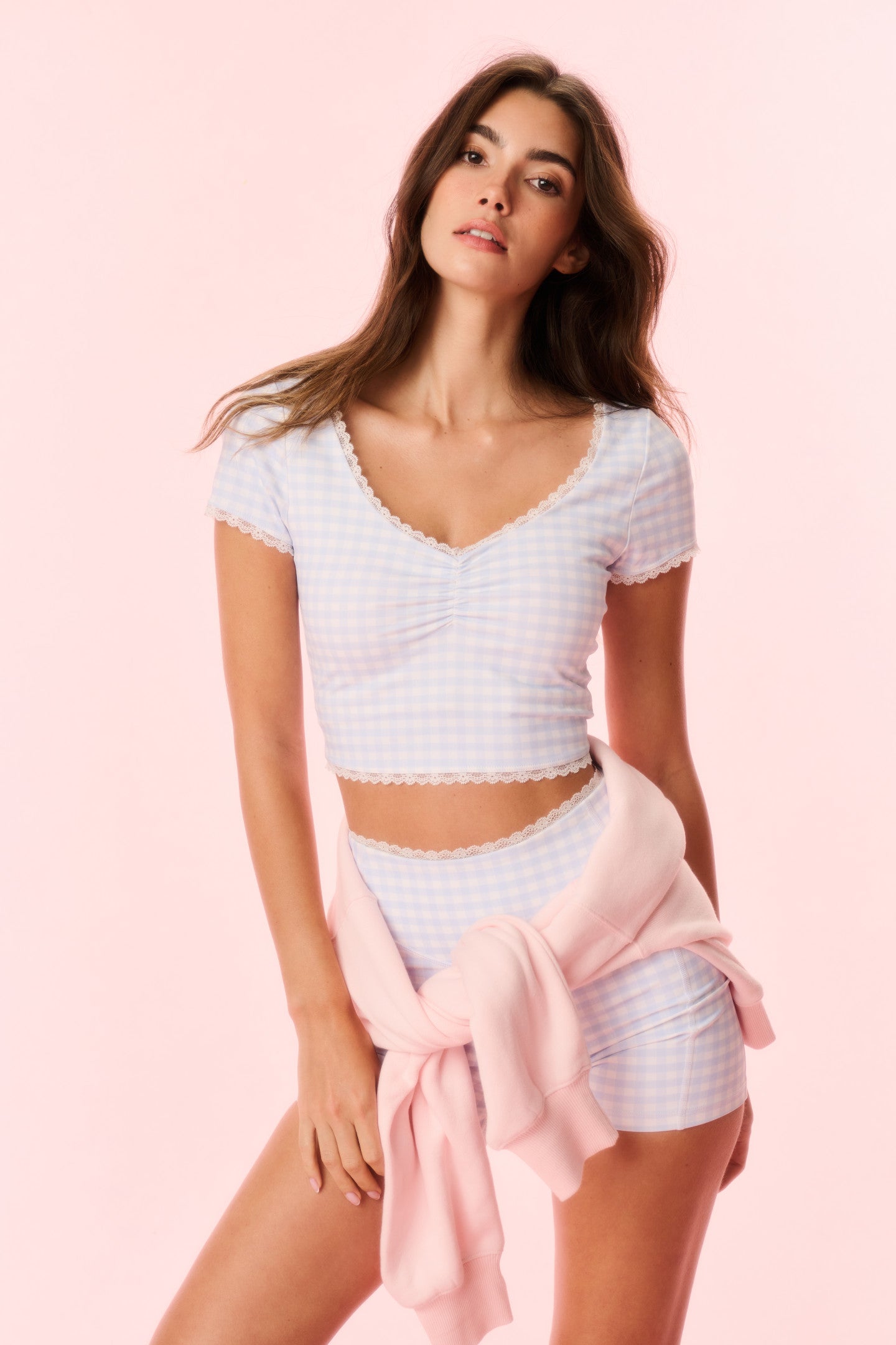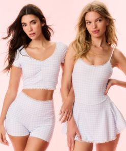LoveShackFancy Women’s Gia Gingham Print Biker Short | Beachside Blue