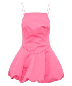 On our way in the Jake Dress. This stunning party mini debuts with a luxe, satin fabric. The dress features a flirty bubble mini skirt which sits beneath a corset-like, fitted bodice with a dropped waist. Thin spaghetti straps and a high neckline give this piece an elevated and chic silhouette. Wear on your next date night, party and girl’s night out.
