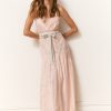 The Marzenia Top returns for the season with a striped cotton voile fabric featuring a ditsy floral print all over. This Victorian-inspired piece features textured stripes, a smocked bodice to the empire waist and a charming flutter peplum adorned with lace trims and delicate tucking. Adjustable spaghetti straps ensure a perfect fit, making it ideal for pairing with skirts or denim for both casual and elegant occasions.