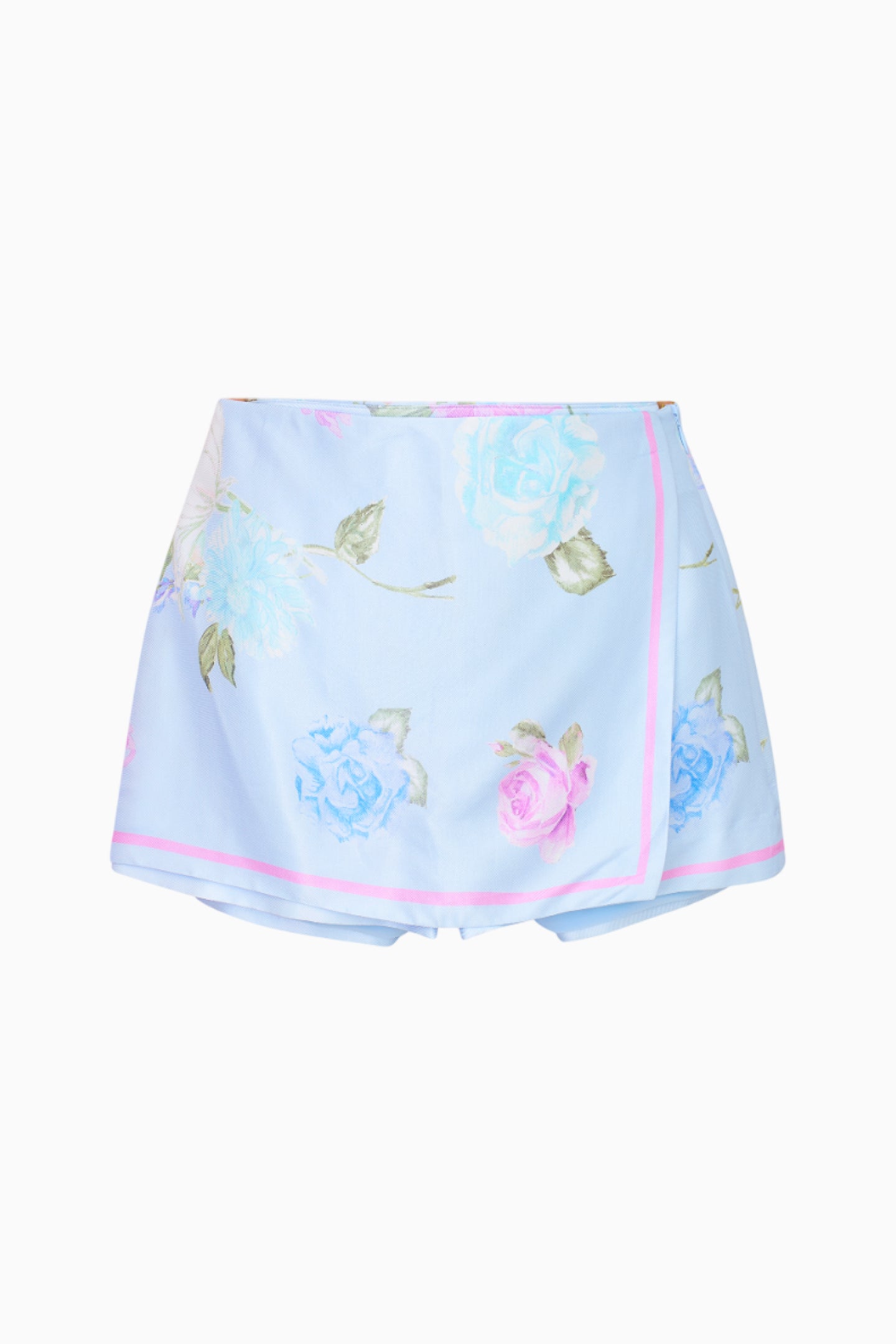 Introducing the Sapphira Skort. This flirty mini debuts with an Italian-inspired print featuring hand-painted flowers in a romantic arrangement. The mini bottoms have small printed shorts underneath the overlayer and are finished with a zipper. Pair with the Hollison Top for a full set.
