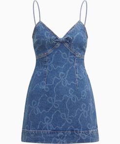 Denim dreams come true with the Solina Dress. This playful mini dress has our signature Luna Rosa Beaux print lasered into the denim for a feminine touch. The body-hugging piece features a wash effect, adjustable spaghetti straps, and a top-applied bow detail at the front. This piece is finished with a zipper.