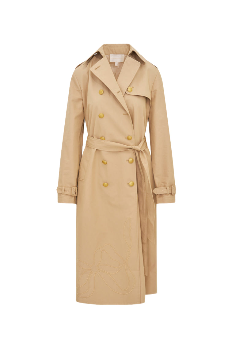 LoveShackFancy Women’s Thiel Bow-embroidered Trench Coat | Toffee Nude