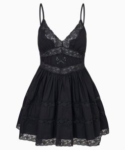 MiniMiniIntroducing the Zima Dress. This vintage-inspired mini is designed from a crisp, poplin cotton fabric stripped with intricate laces at the body, neck, and the A-line skirt. With a fit-to-flare, structural silhouette, the flirty dress gives off a flattering fit. A bow detail sits at center front alongside thin spaghetti stripes, a scoop neckline, and an airy skirt. This piece includes a side seam zipper.