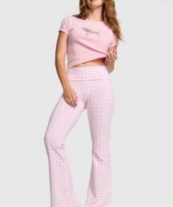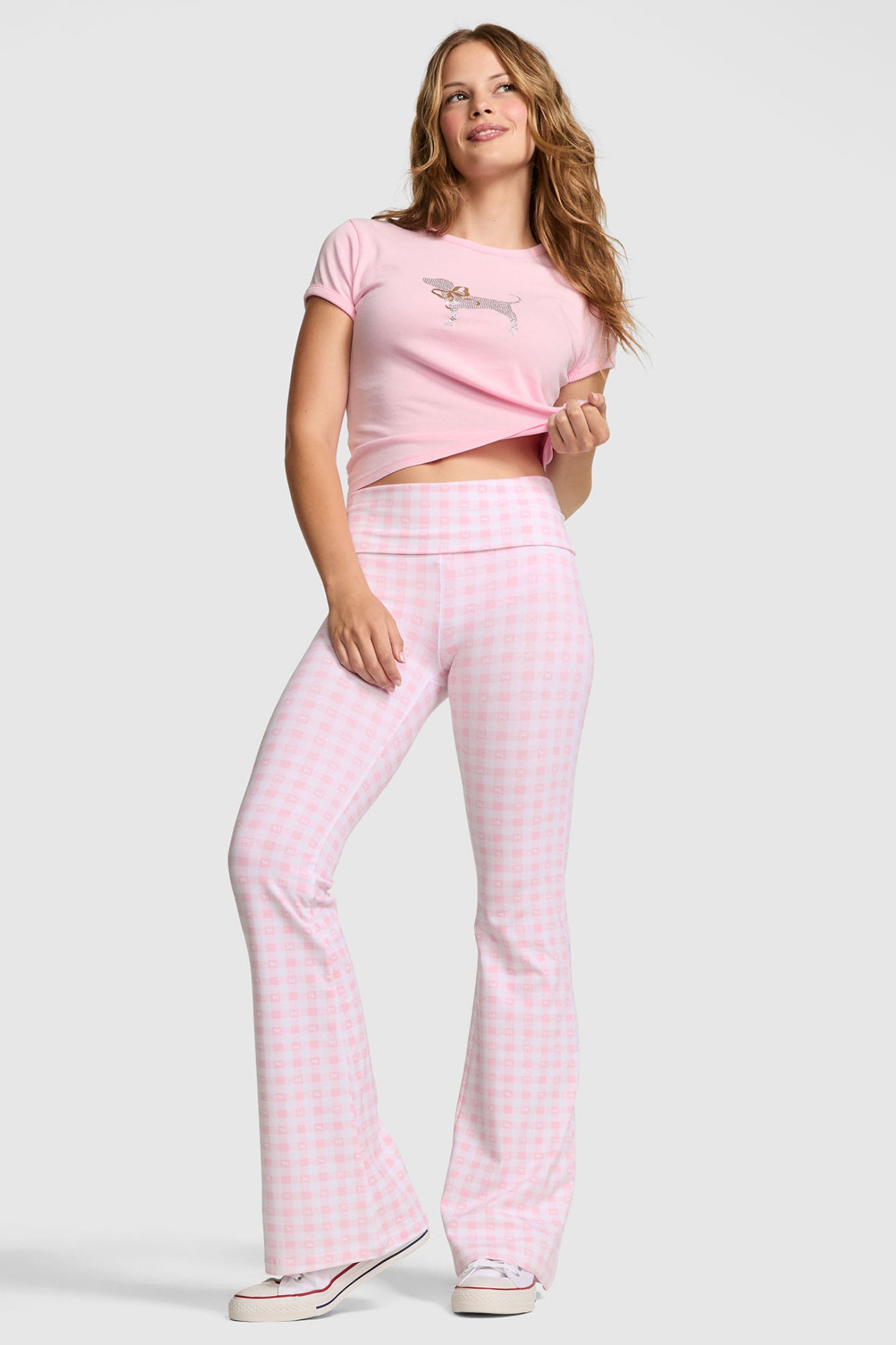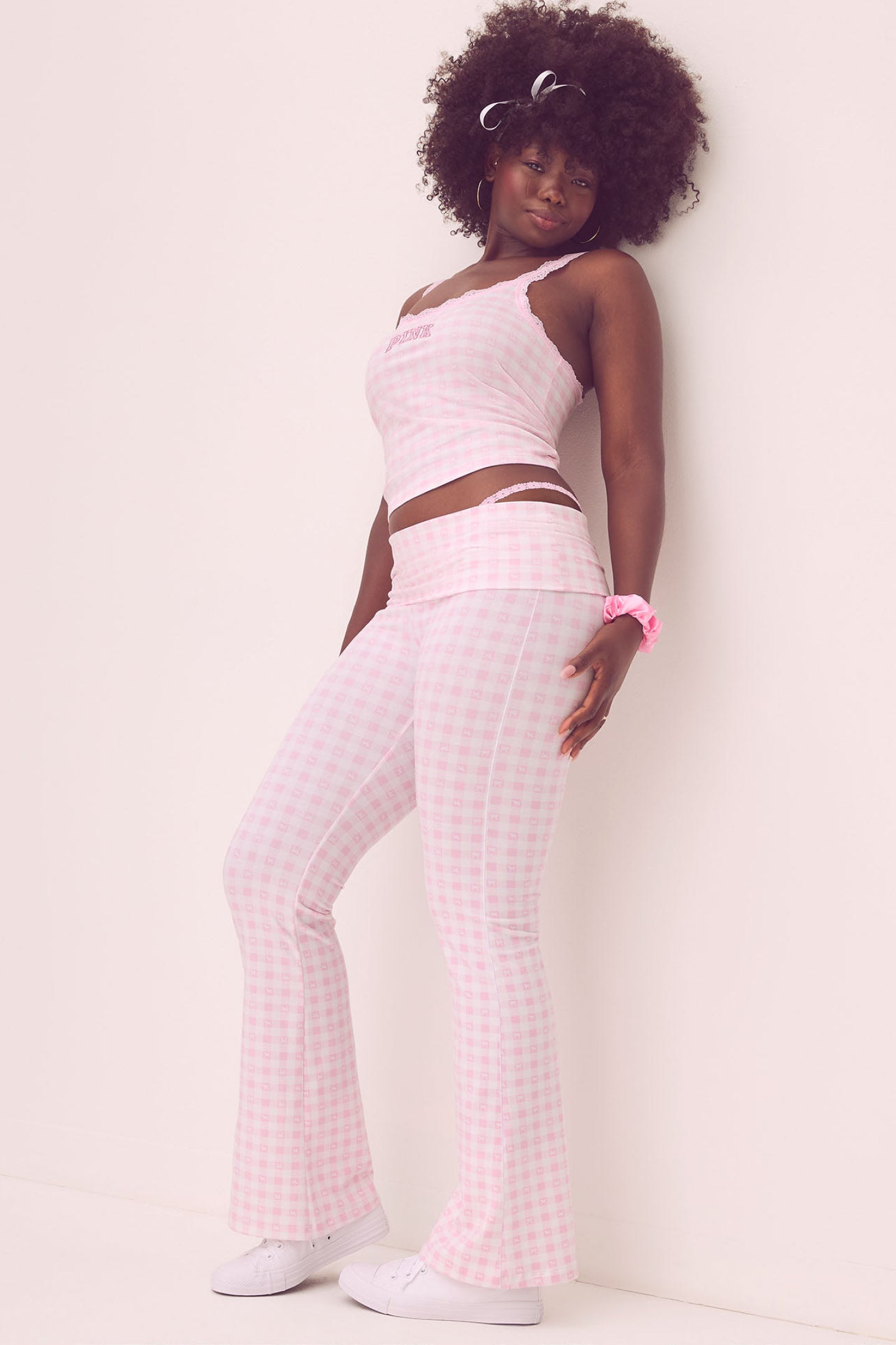 Women’s Pink X Loveshackfancy Cotton Foldover Flare Leggings | Icon Gingham